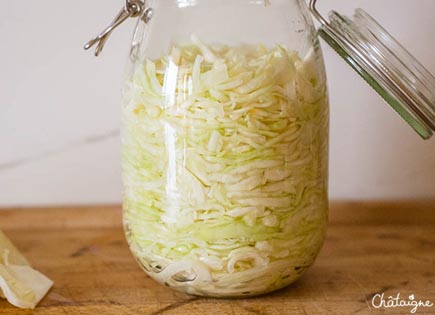 Honnêtement je ne savais pas trop dans quoi je m’embarquais :D Quelle technique devait être mise en place ? Est-ce que c’était un procédé plutôt court ou plutôt long ? Force a été de constater que tous les sites sur lesquels je suis tombée proposaient la même recette : du chou lactofermenté.