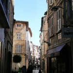 Après notre premier repas de la saison en terrasse, nous avons opté pour une visite pépère de la ville. On s’est laissé guidé par nos pas jusqu’aux Halles, le marché provençal de la ville. Attention aux horaires (6h-14h le weekend), les stands étaient en train de remballer la marchandise. Et de fil en aiguille, nous avons arpenté les petites ruelles pavées pour la plupart, en terminant par la plus majestueuse selon moi : la rue Peyrolerie. Creusée dans la roche, et juste au pied du Palais des papes, elle offre un point de vue magnifique sur les tours du palais qui se découpent dans le ciel.