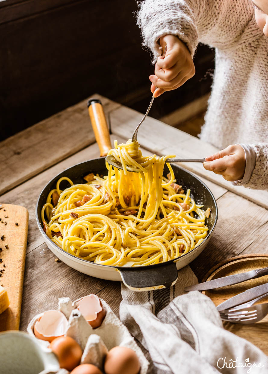 Voilà, je crois que je vais me taire, ahaha ! Tu verras, ça sera plus rapide de cuisiner que de lire ce pavé. En tout cas, une chose est sûre, plus jamais je n’utiliserai de crème dans mes pâtes carbonara !