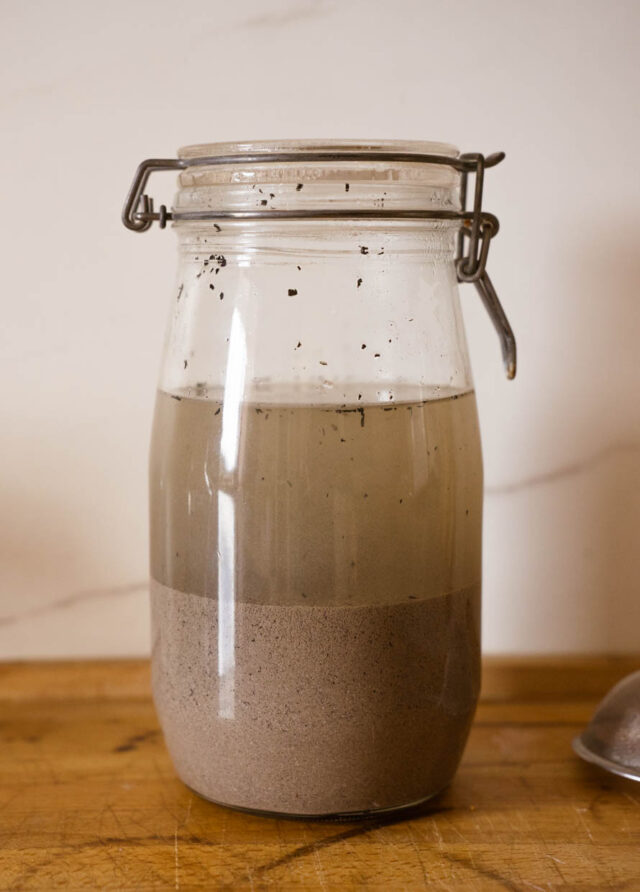 Mélanger, fermer le bocal et laisser décanter 3 jours en remuant une à deux fois par jour.