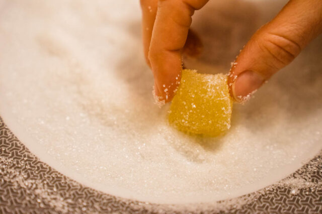 Au terme des 4 jours, enrober les pâtes de fruits de sucre cristal. C'est prêt !