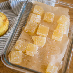 Au bout de 24 heures, démouler la pâte de poires, et la détailler en rectangles d'environ 1,5 x 2cm.